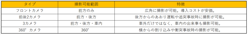 ドライブレコーダーも撮影したい範囲によってさまざまな種類があり、それぞれ撮影可能範囲が異なります。